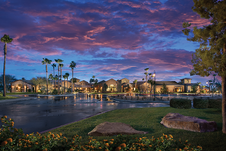 Gold Achievement Award Winner – NAHB 55+ Housing Industry Council. At the heart of Robson Ranch, the Ranch House, infused with a casual elegance and well-appointed amenities, is inviting and lively...a place where neighbors gather, friendships flourish, and new adventures are planned. Spanning approximately 40,000 sq. ft., the Ranch House showcases the Grill with main dining room, lounge and private dinning room, Hermosa ballroom/auditorium with stage, TV lounge/coffee bar, multi-purpose rooms and covered patios.