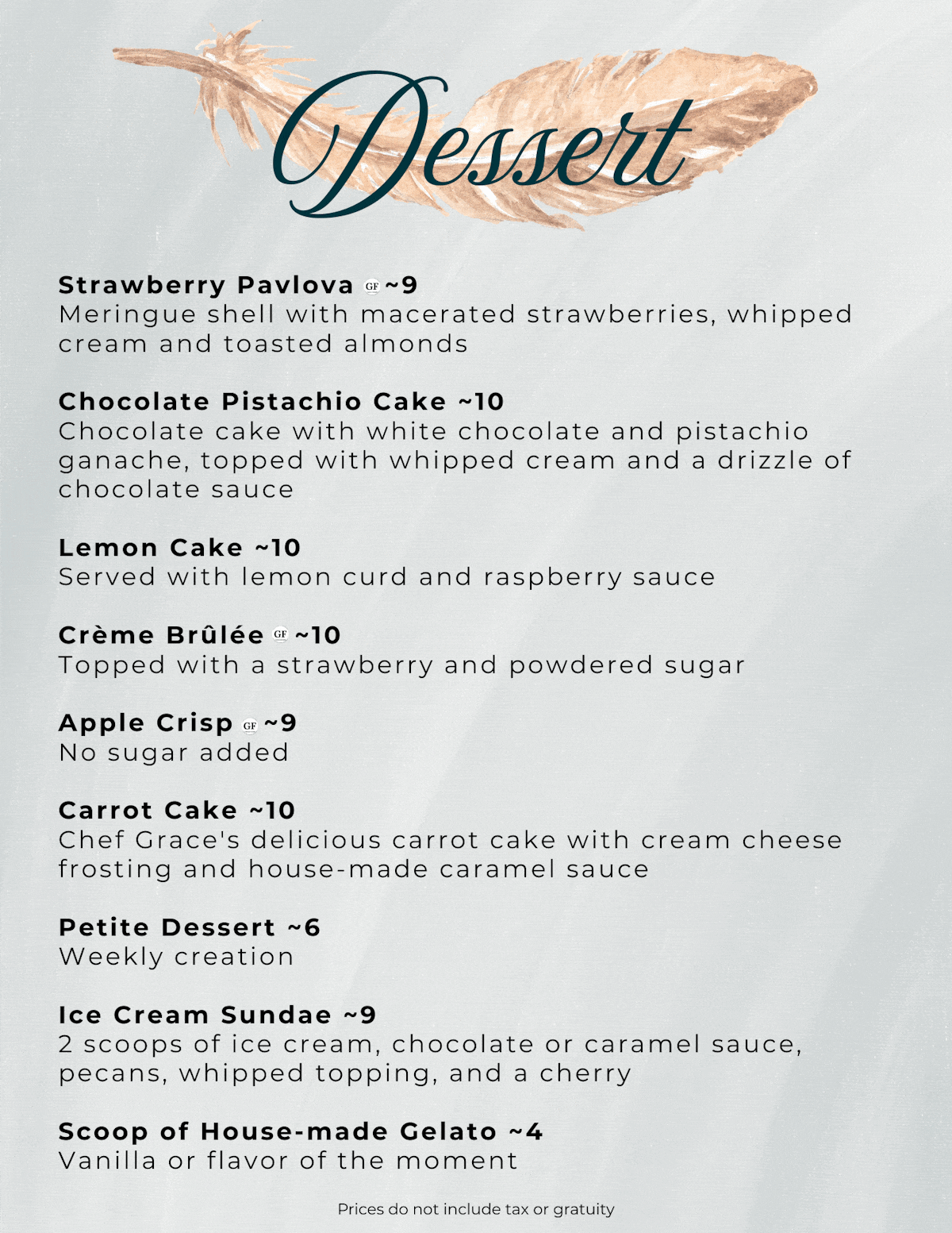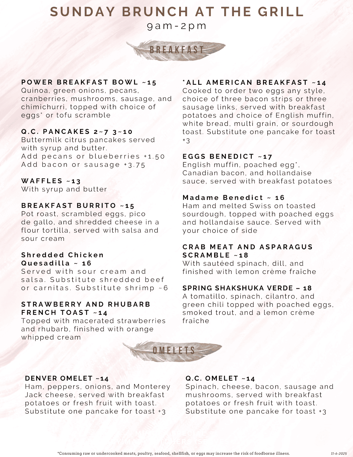 • Sunday Lounge service 2 PM to 5 PM, drinks only