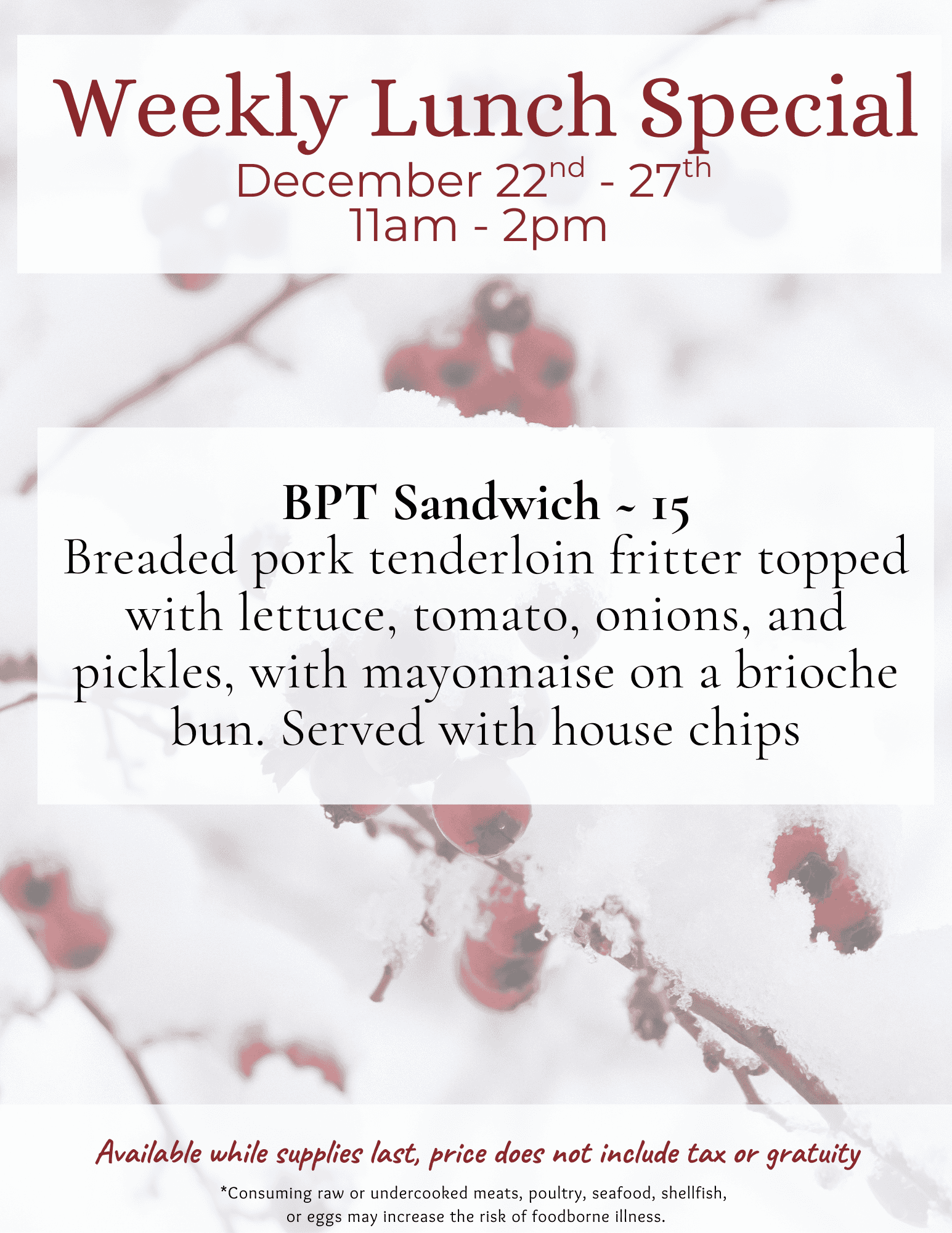 Lunch Special - 12/22 to 12/27