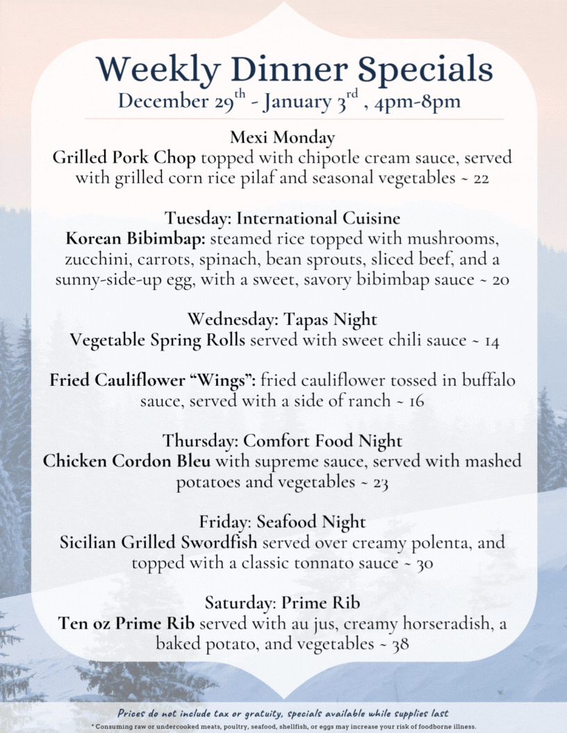 Dinner Specials - 12/29 to 1/3