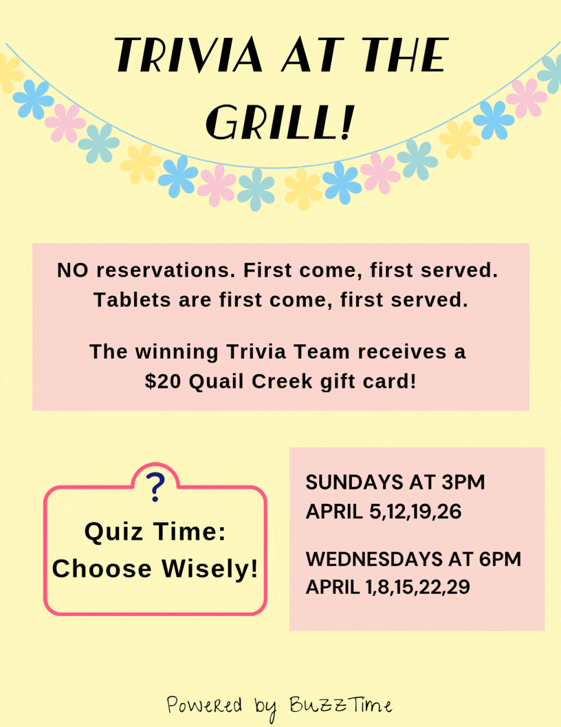 Hours and Menus: Click on Grill at Quail Creek