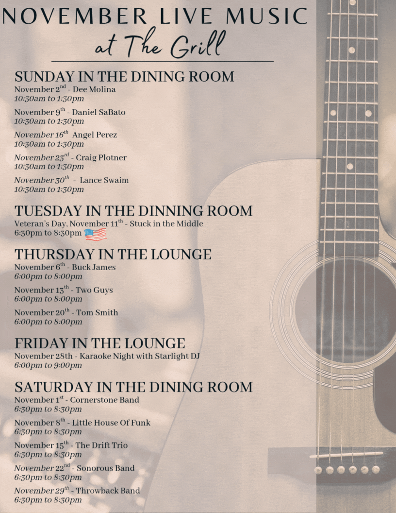 The Grill at Quail Creek is truly a delightful centerpiece, a gathering place where neighbors come to catch up on conversation or plan that next big adventure. You’ll enjoy the indoor & outdoor dining areas, board room with fireplace for private parties, and a U-shaped bar for enjoying happy hours with friends.