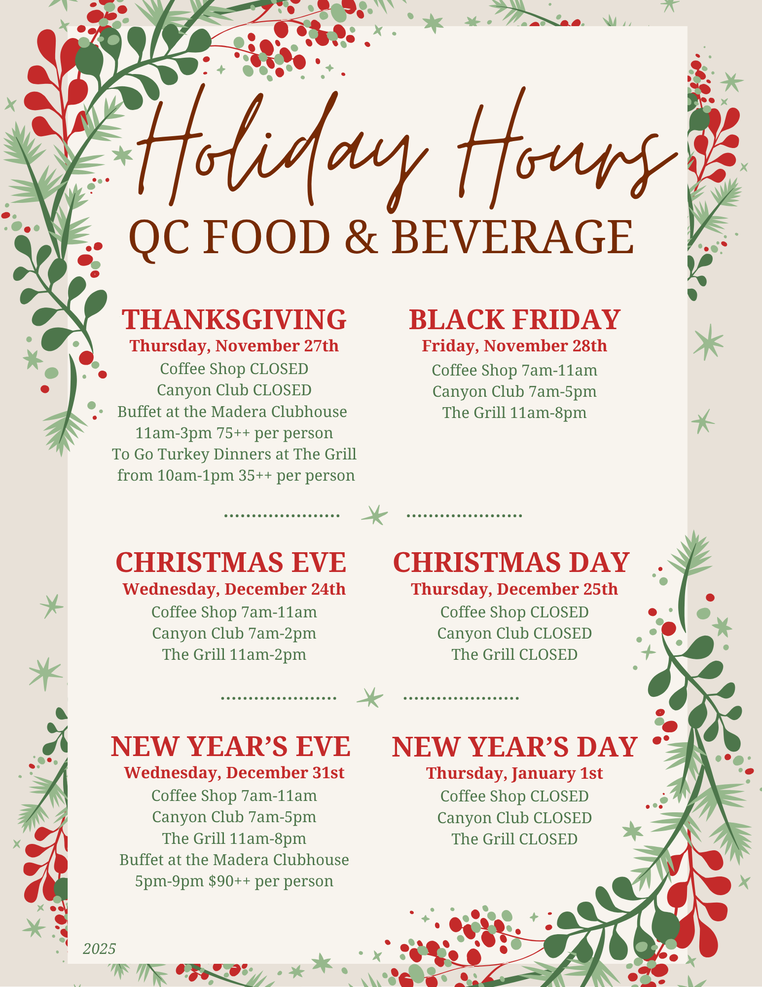December 2025 - Food & Beverage Specials